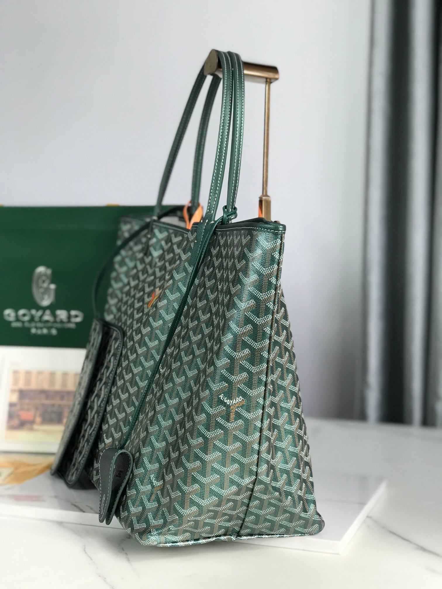 GRAND HÔTEL TRUNK BAG 24 IN GREEN GOYARDINE CANVAS AND CALFSKIN
