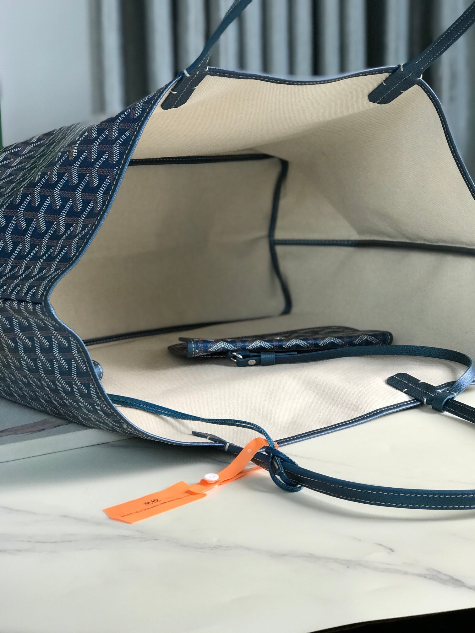 saint louis pm 34cm blue canvas chevroches calfskin