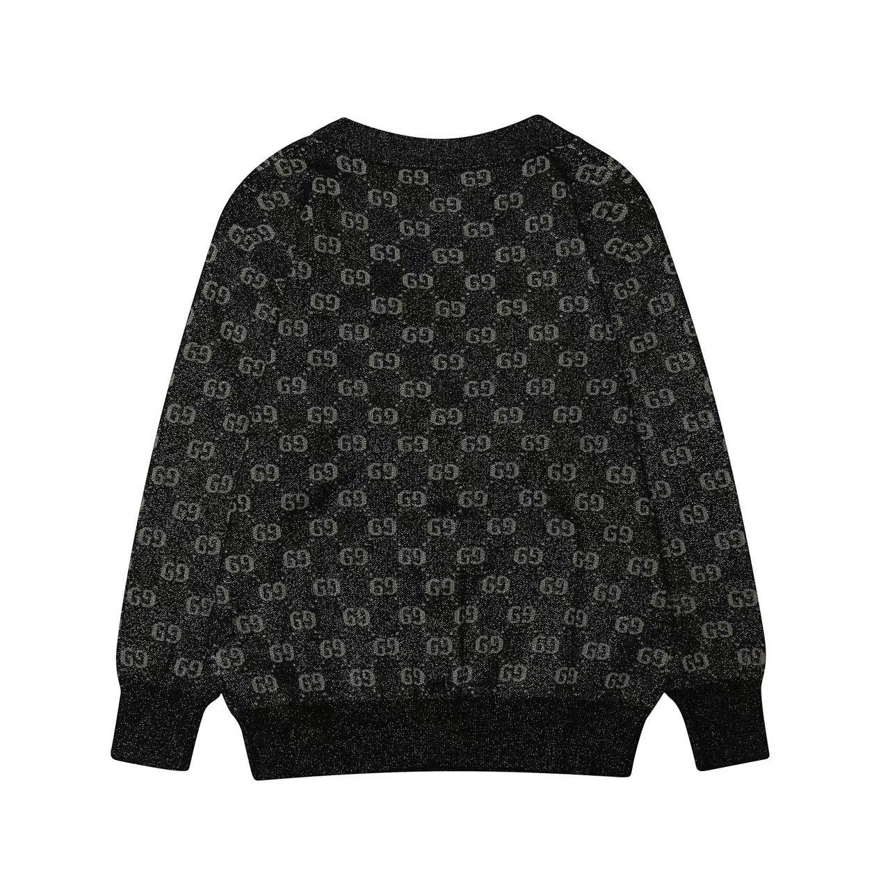 GG Cardigan V-Neck Monogram Black Jacquard