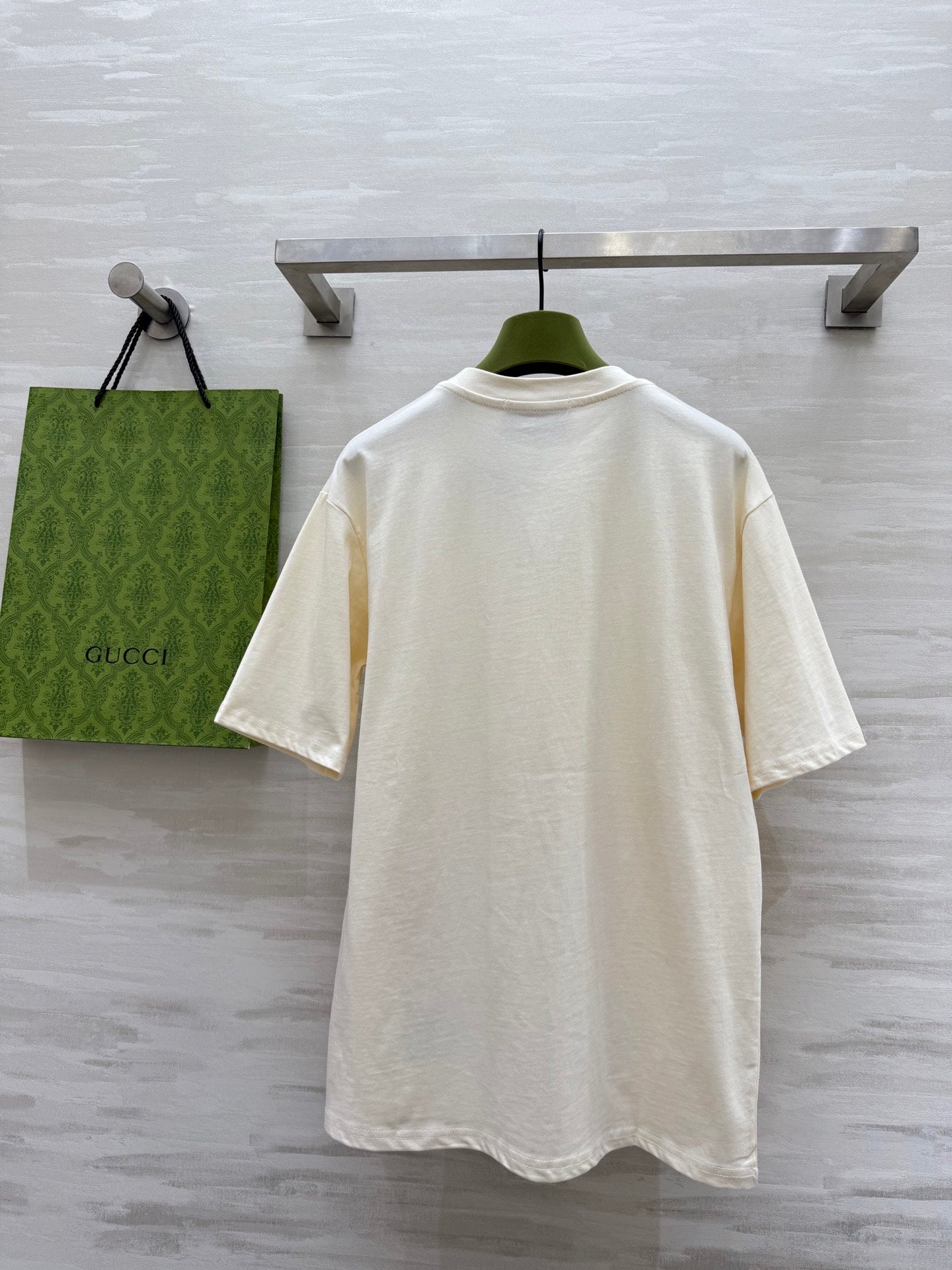 Gucci 25 Kitten Short-sleeved T-shirt Beige Brown Cotton