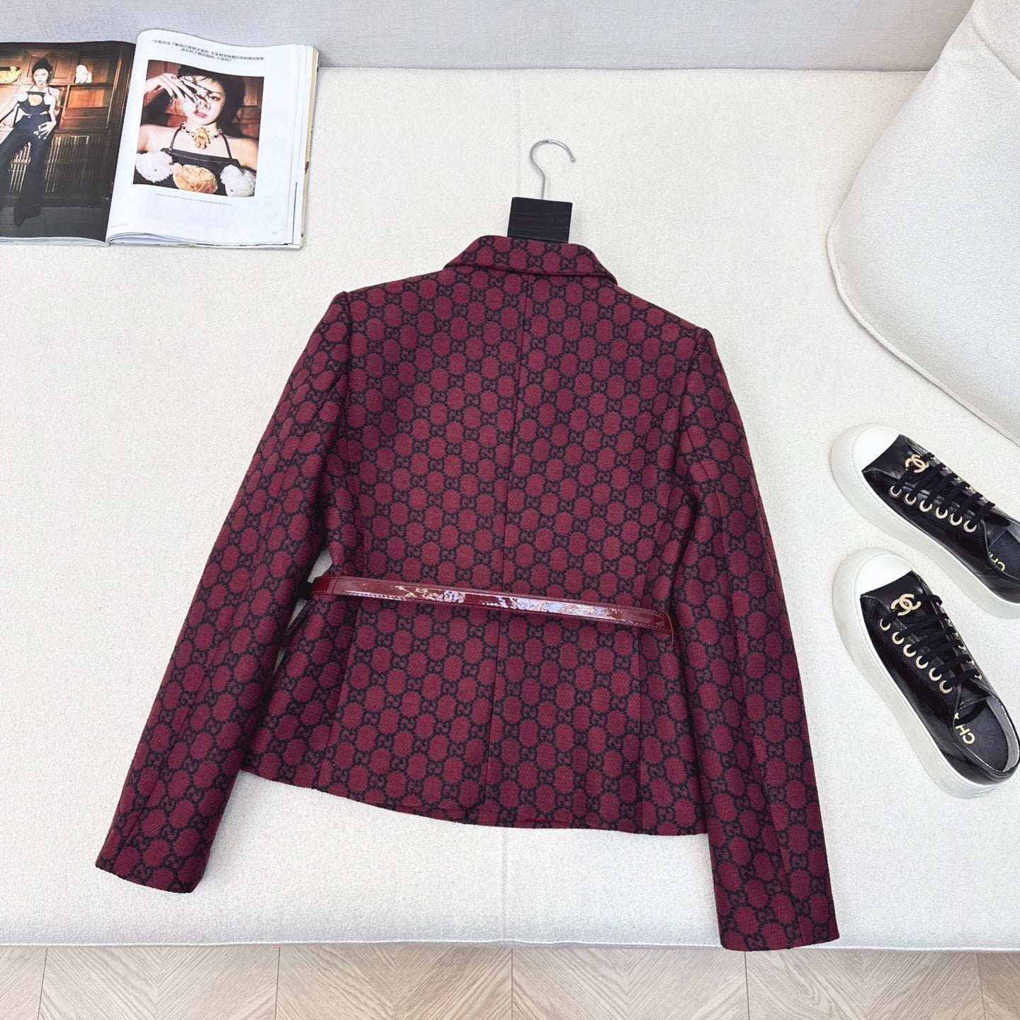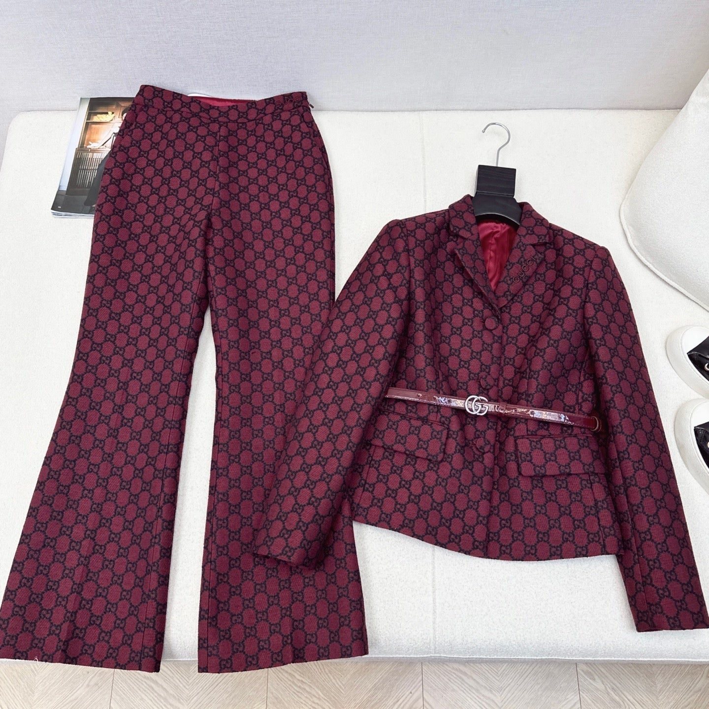 Gucci 25 Patterned Suit Red Jacquard Fabric