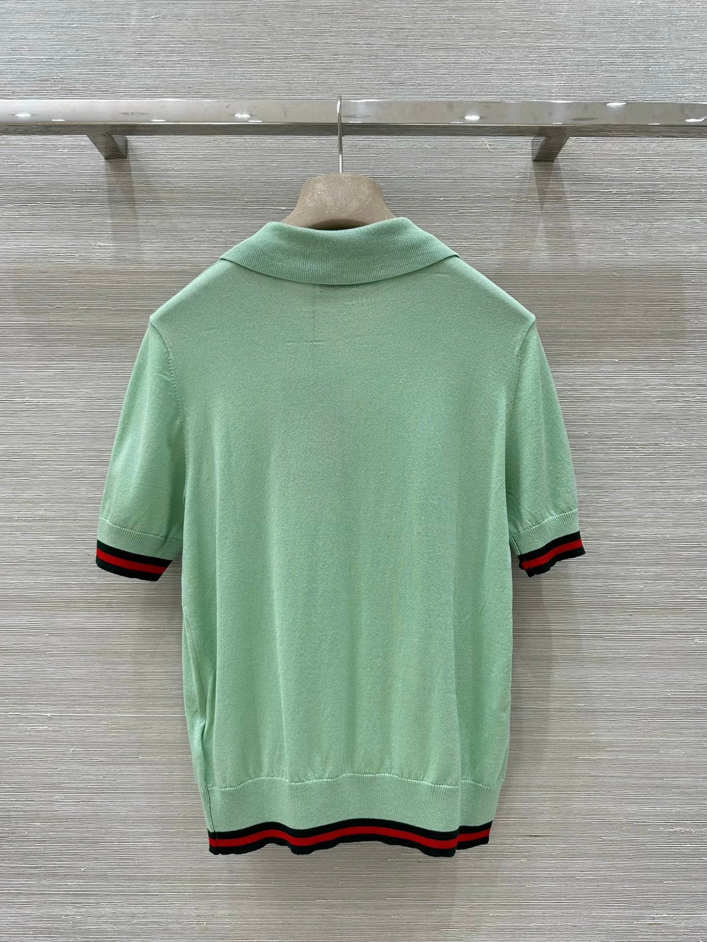 Gucci 25 Polo Short-sleeved Top Green Cashmere