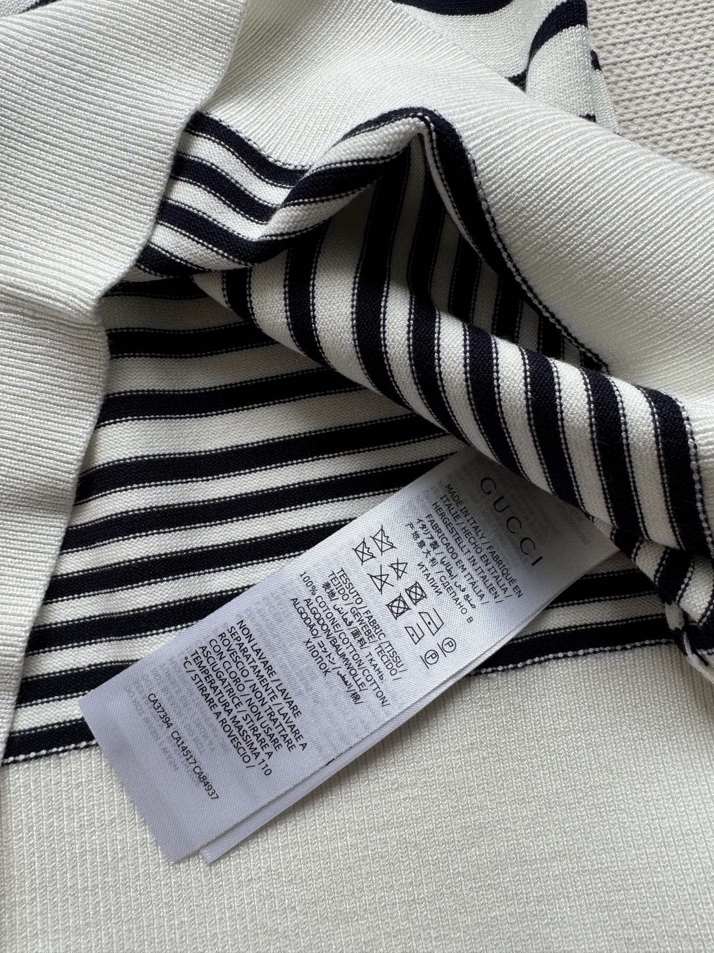 Gucci Striped Polo Knitted Top Dark Blue White Cotton