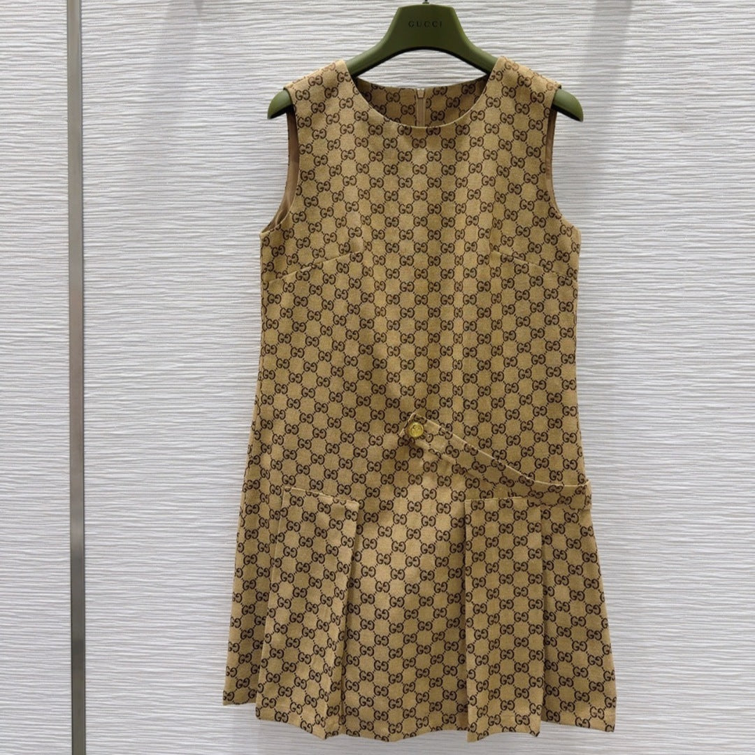 Gucci 2025 Dress Camel and Ebony Polyester Fiber