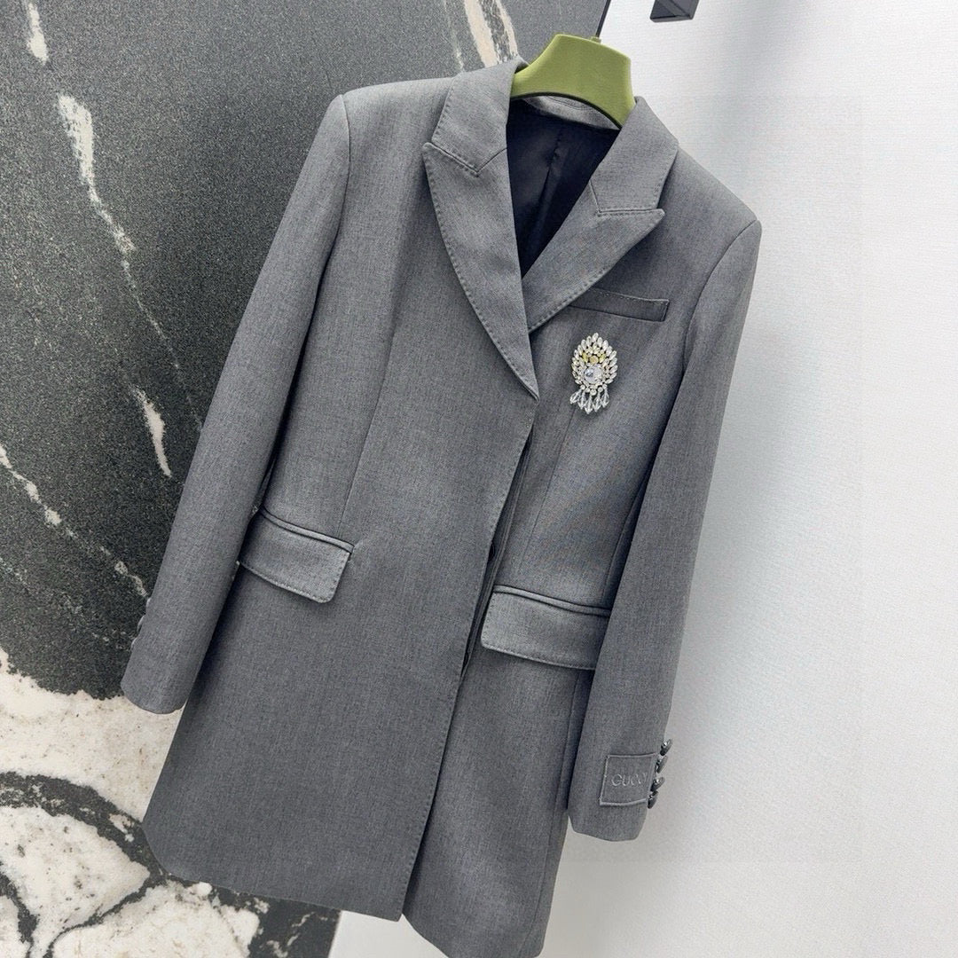 Gucci 25 Diamond Round Neck Jacket Gray Viscose