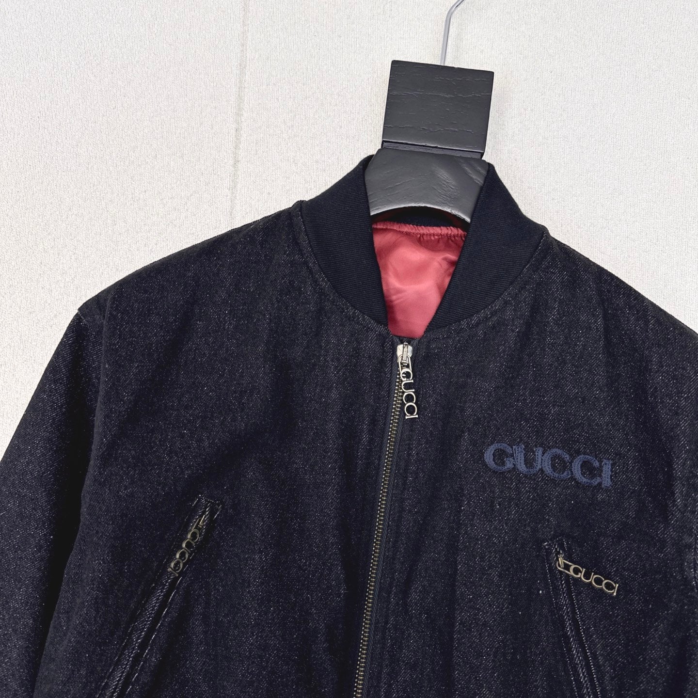 Gucci 25 Short Stand-up Collar Jacket Dark Blue Cotton 596441