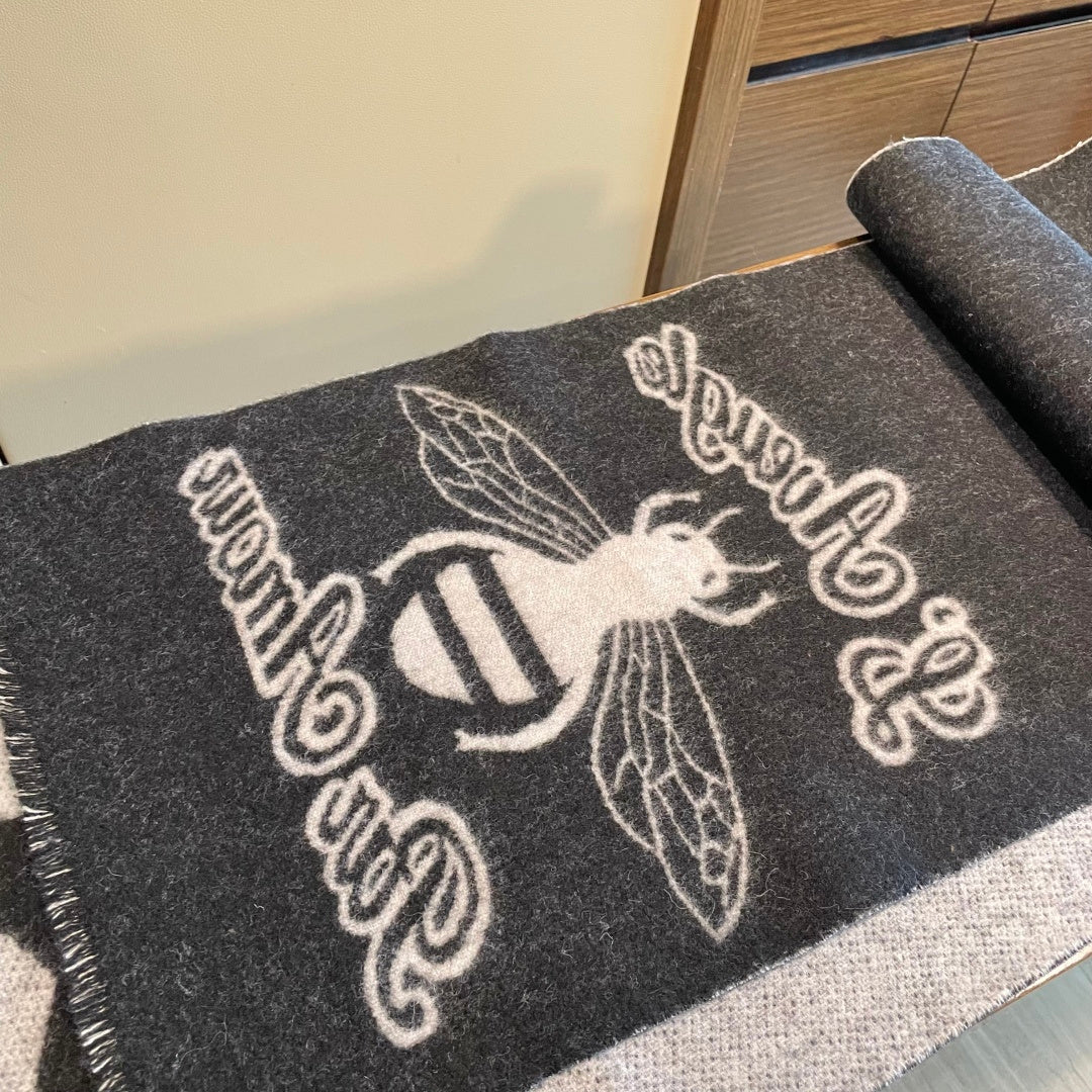 GG Double G Jacquard Scarf 180CM Black Gray Wool 283098