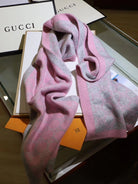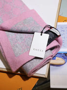 GG Double G Jacquard Scarf 180CM Pink Gray Wool 282698
