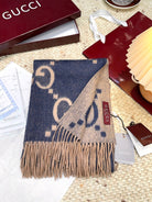 GG Double G Jacquard Scarf 200CM Blue Beige Wool 282792