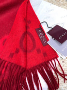 GG Double G Jacquard Scarf 200CM Red Wool 282789