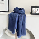 GG Houndstooth Scarf 180CM Blue Cashmere 288128