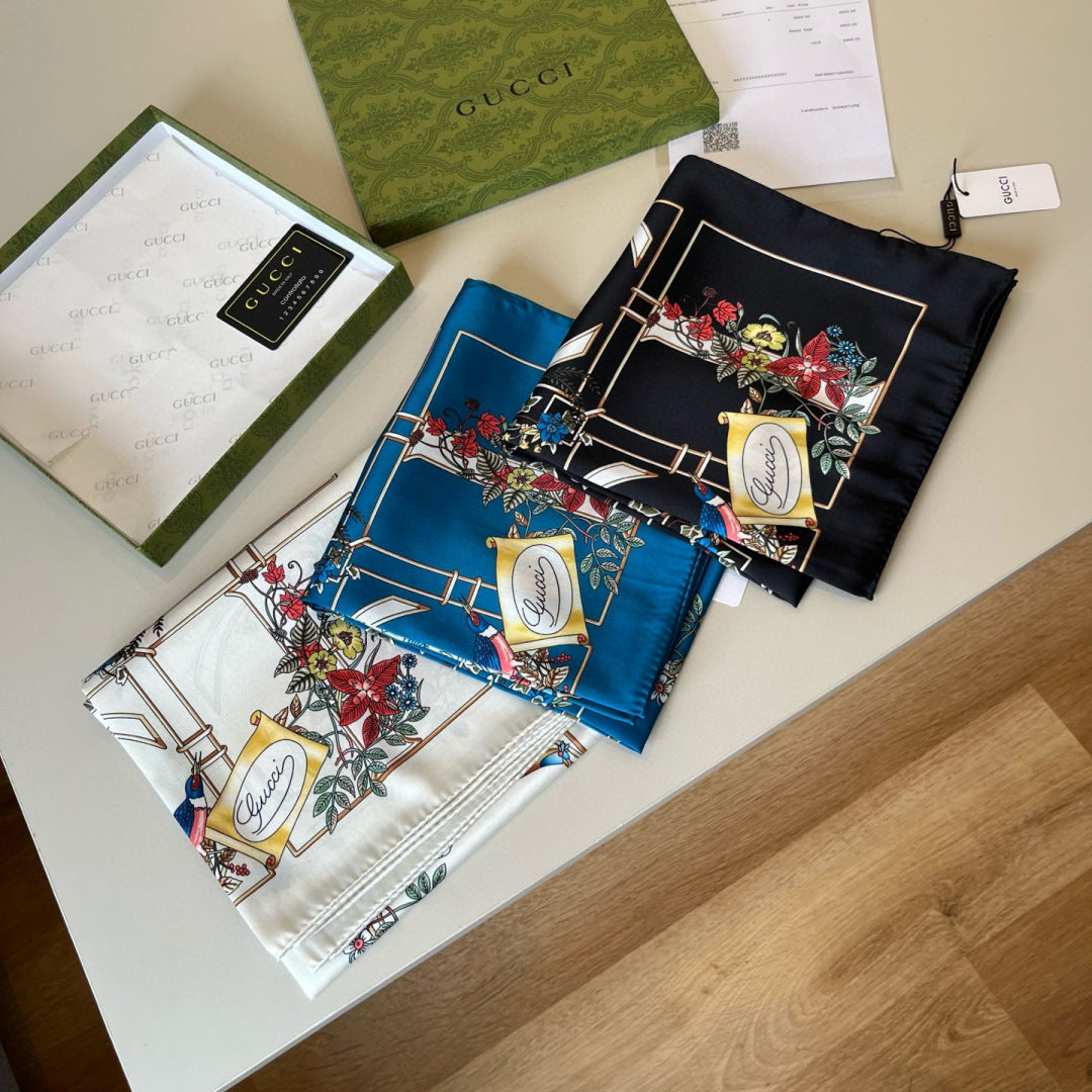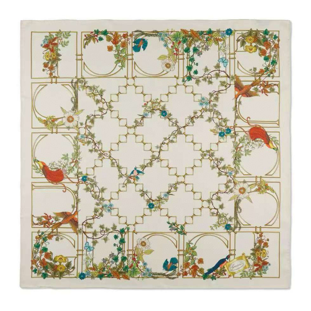 GG Signature Floral Scarf 90CM Cream Muticolor Twill Mulberry Silk 280661