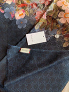 SCARF 200 CM IN BLACK CASHMERE WITH COLORFUL FLOWER 405252