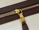 BEAU TOP HANDLE BAG 34 IN COFFEE BROWN SUEDE EMBOSSED LOGO