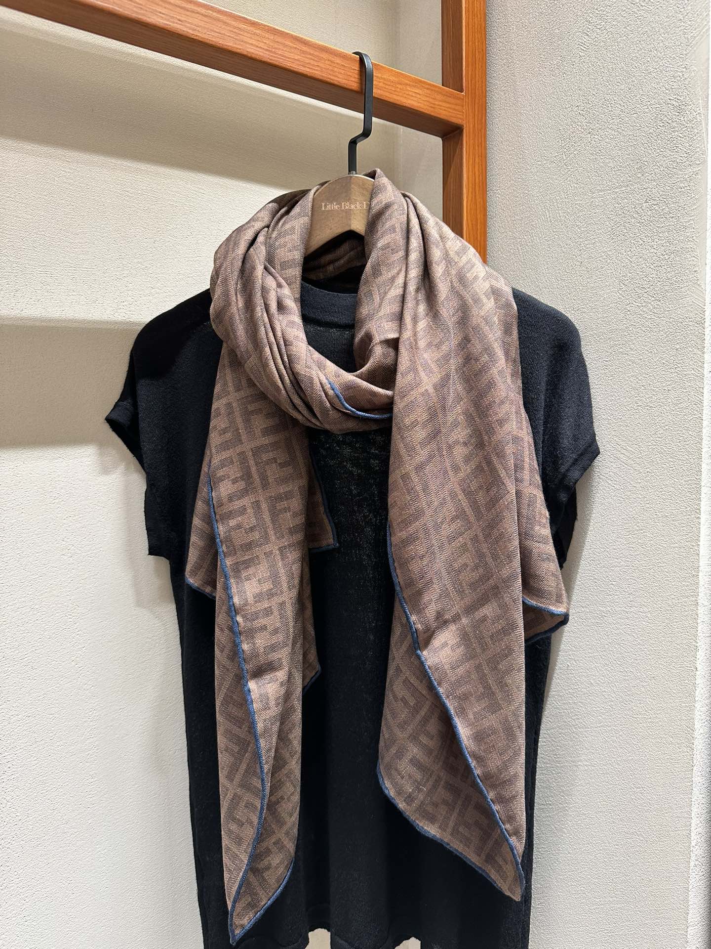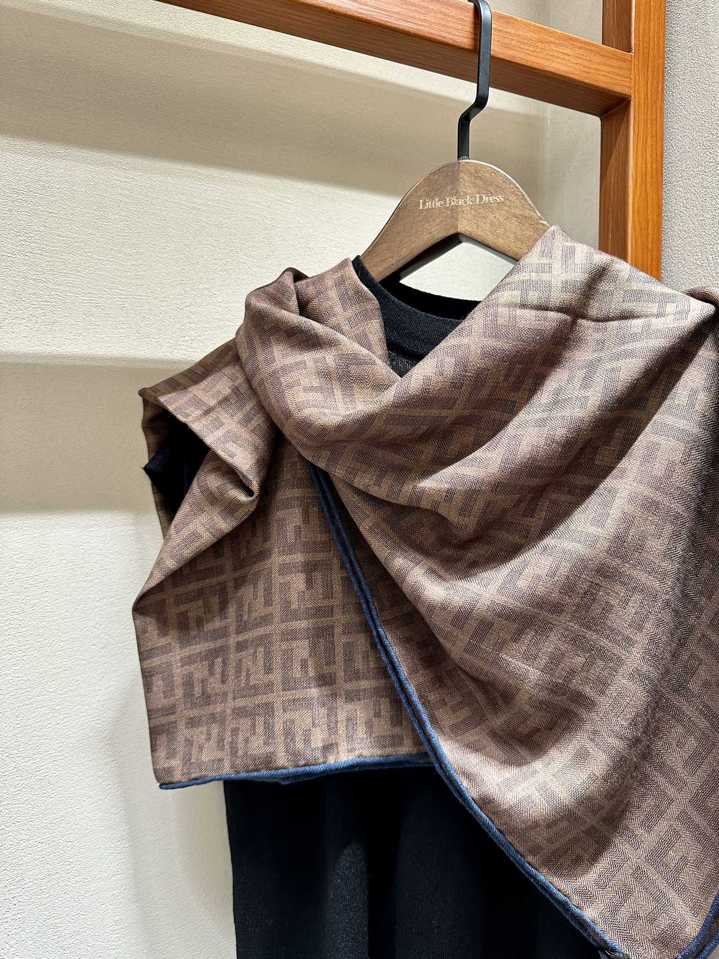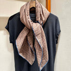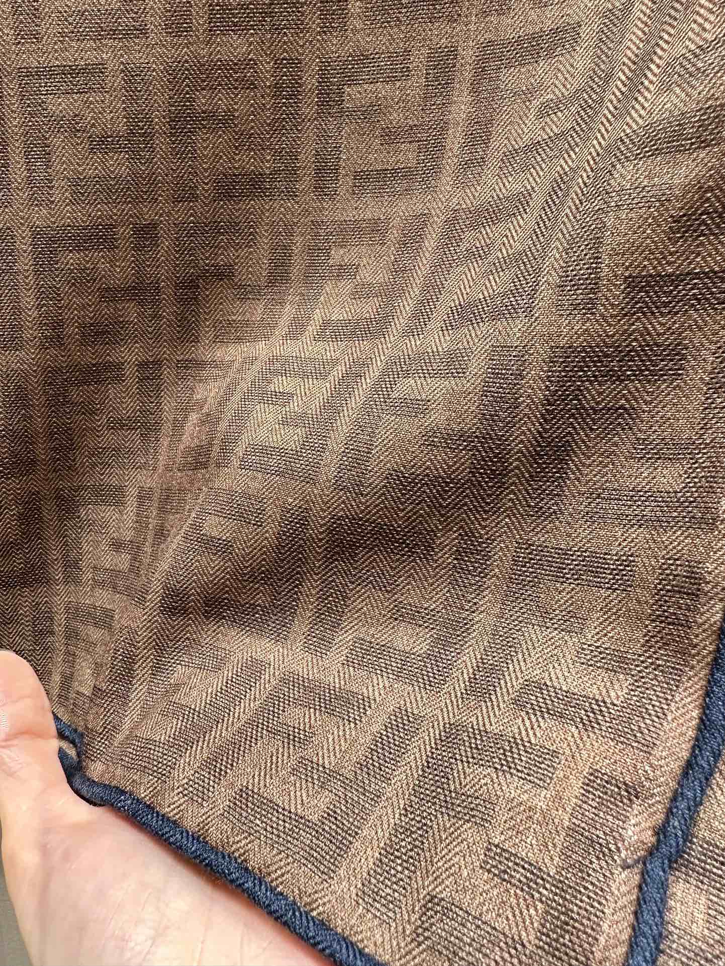 FF SHAWL 185 CM IN COFFEE BROWN SILK AND WOOL WITH BLUE BORDER 413672