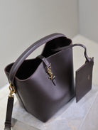 LE 37 MEDIUM BUCKET BAG 26 IN BRUNETTE BROWN CALFSKIN GOLD HARDWARE