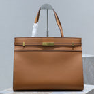 MANHATTAN SHOPPING BAG 40 IN TAWNY BROWN SMOOTH LAMBSKIN GOLD BUCKLE