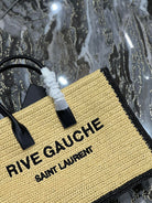 RIVE GAUCHE TOTE BAG 48 IN LIGHT YELLOW AND BLACK TRIM RAFFIA