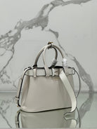 TOTE BAG WITH BELT 32 IN WHITE IMPORTED CALFSKIN