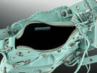 LE CAGOLE SMALL SHOULDER BAG 26 WITH RHINESTONES IN MINT GREEN LAMBSKIN