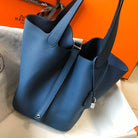 picotin lock blue togo leather silver hardware