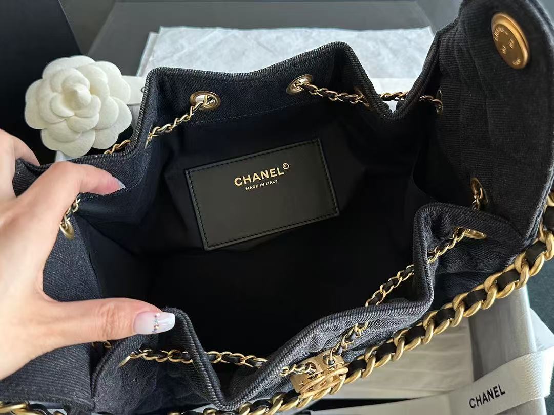 Chanel 2025 Hobo Bag 22cm Black Gold Grained Calfskin
