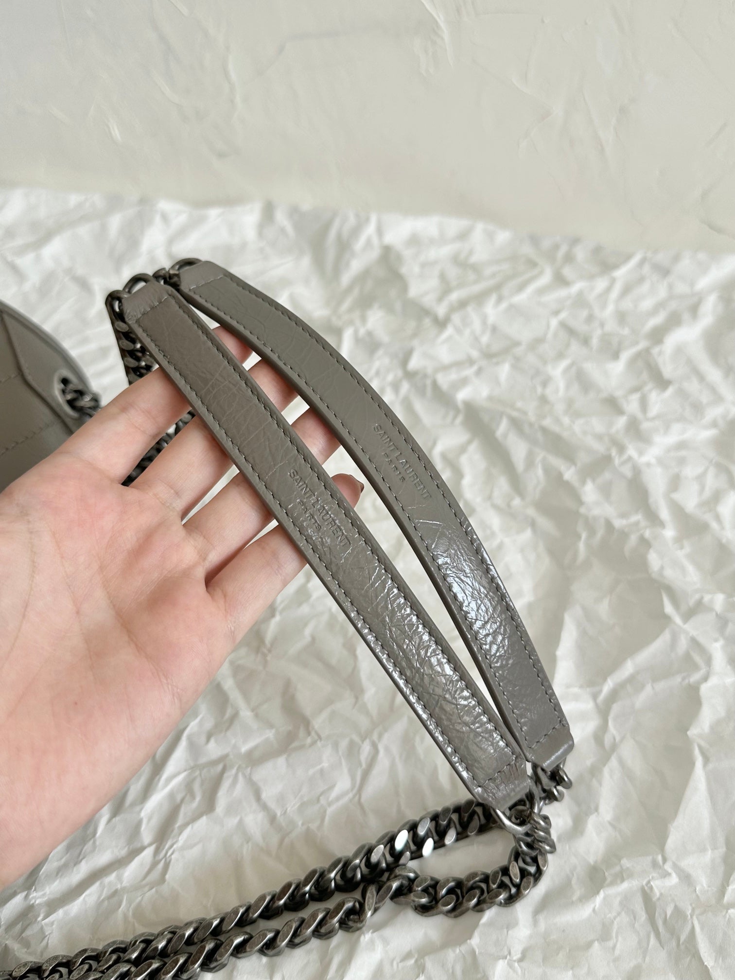 YSL Niki Medium Bag 28cm Grey Crinkled Vintage Leather
