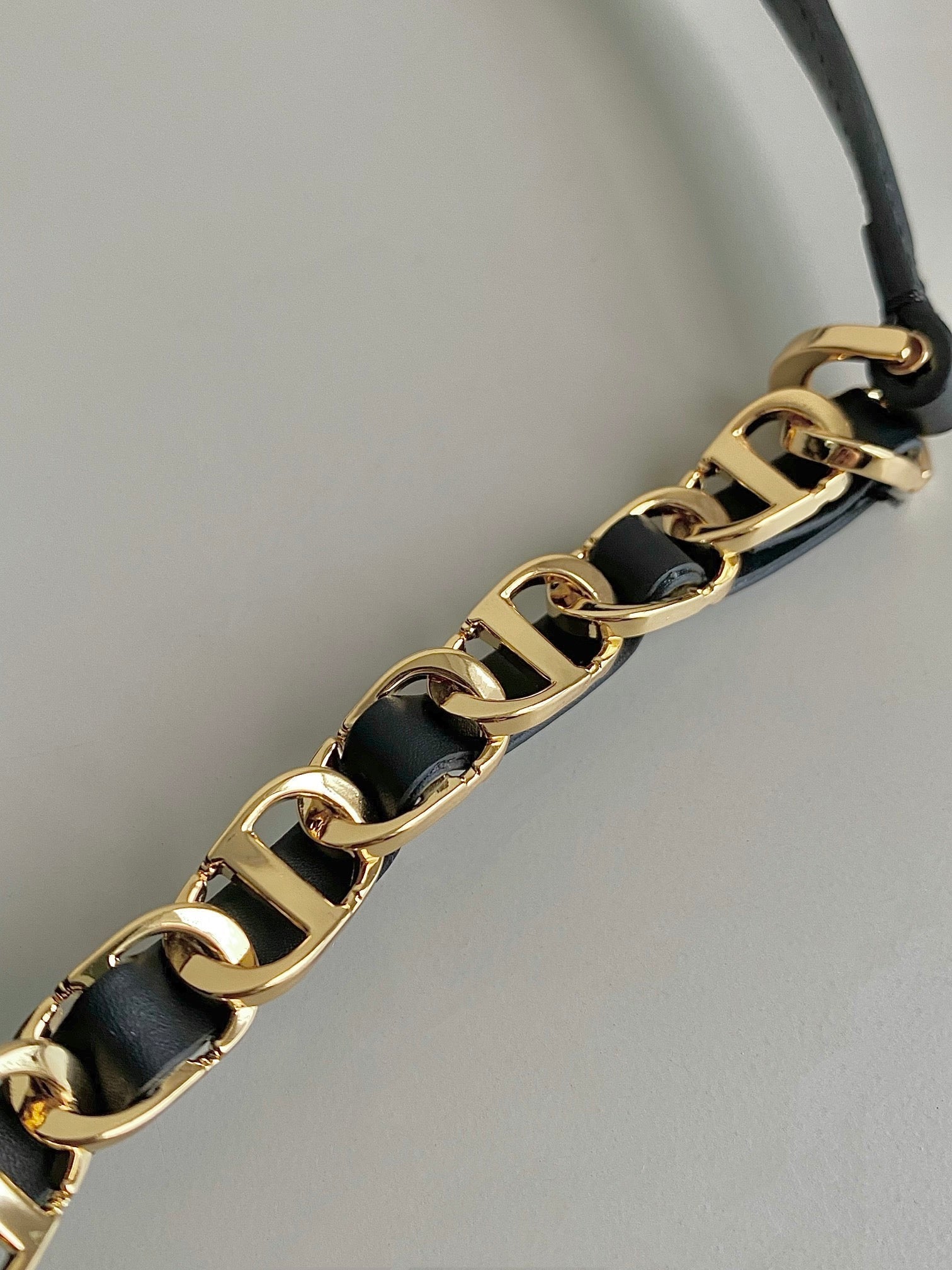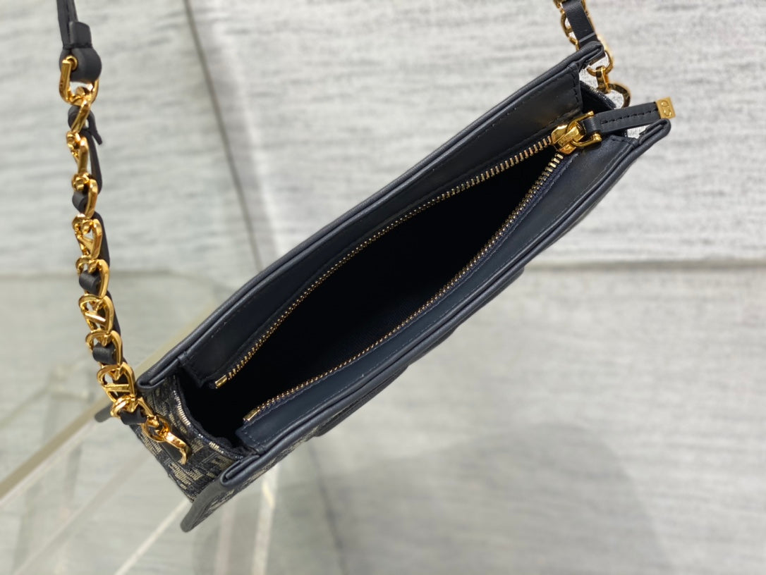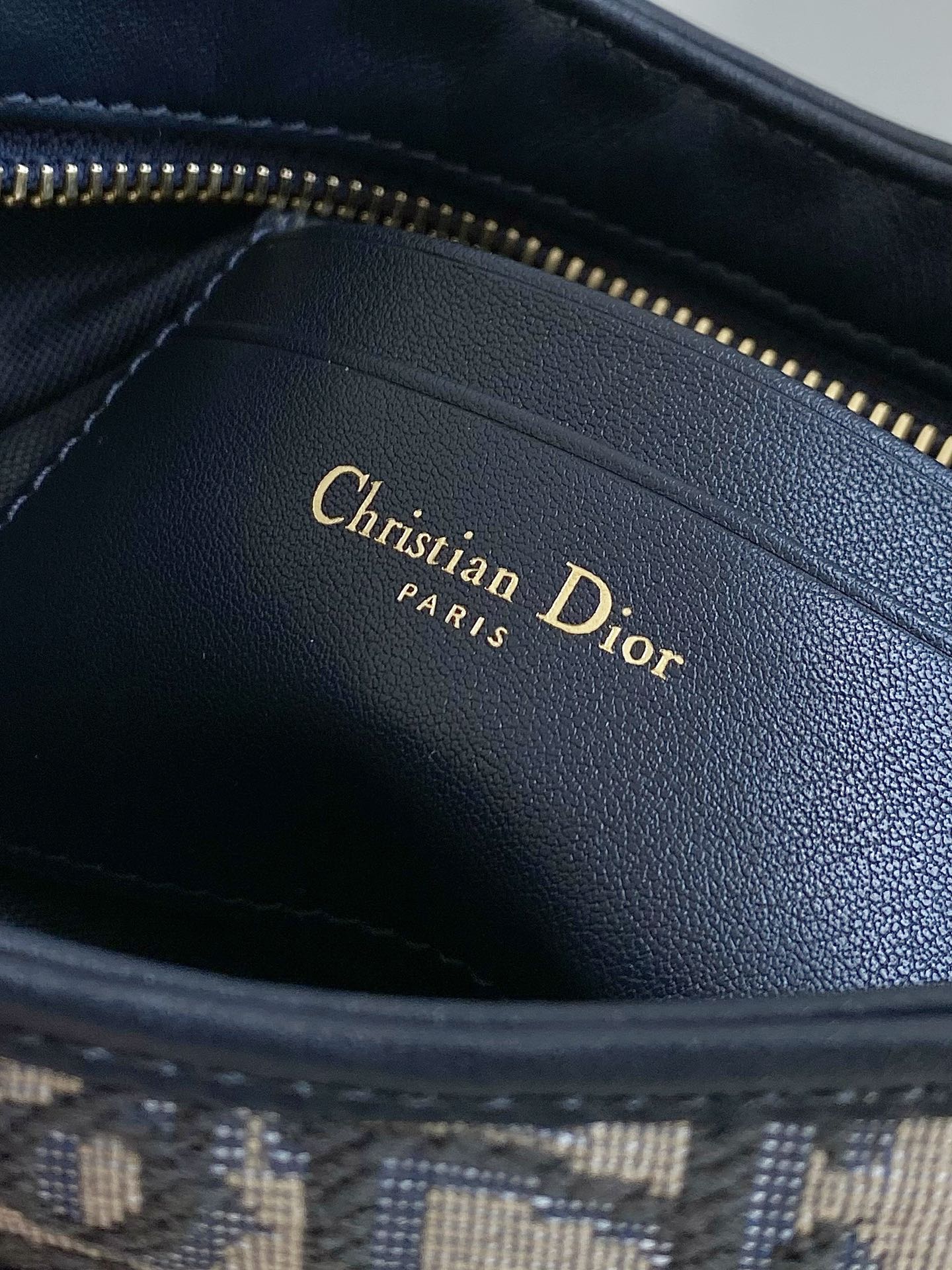 DIORSTAR 28 HOBO BAG WITH CHAIN BLUE DENIM OBLIQUE JACQUARD