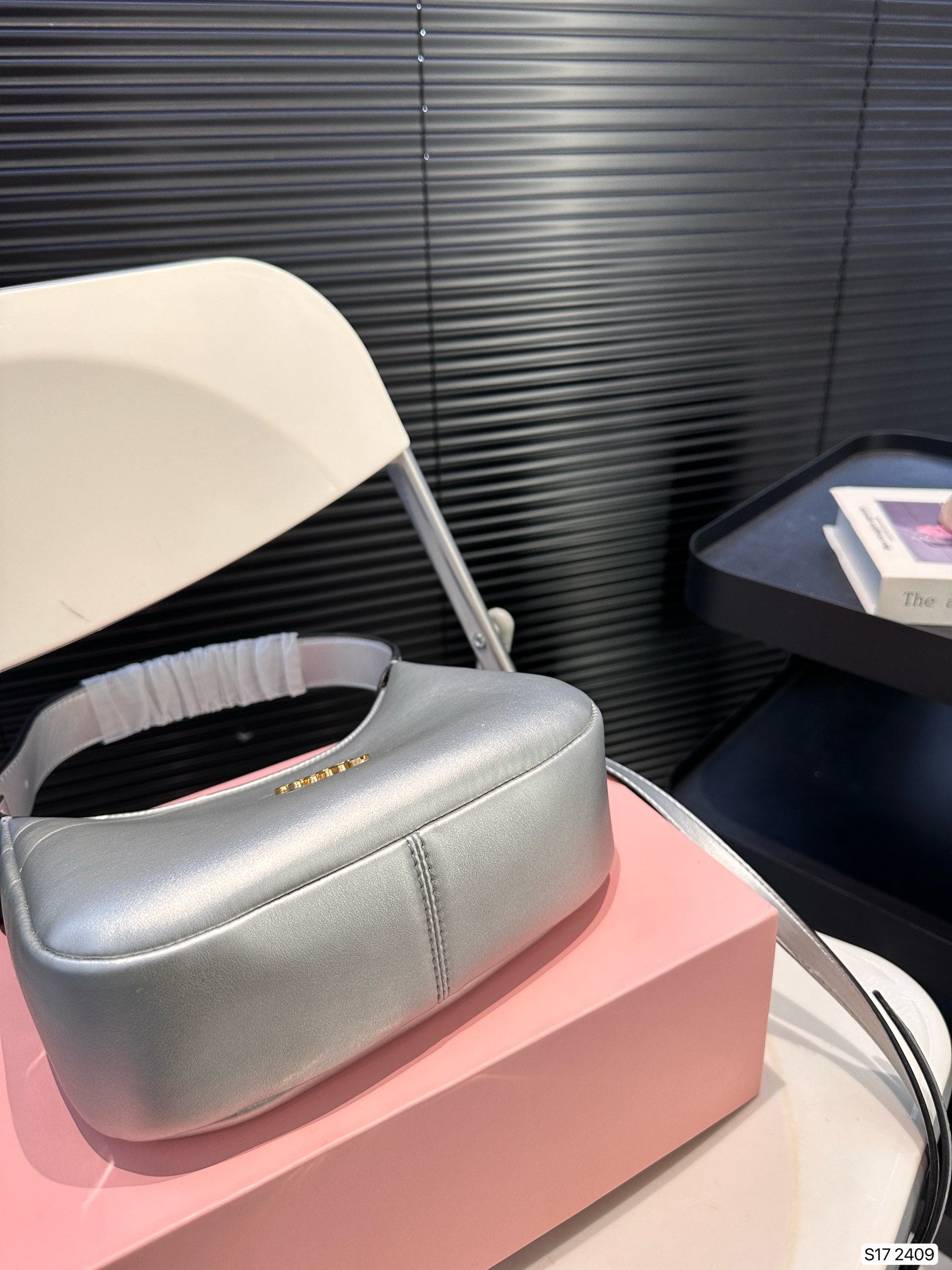 CC 25C Hobo Bags 40cm Silver Metalic Grained Calfskin
