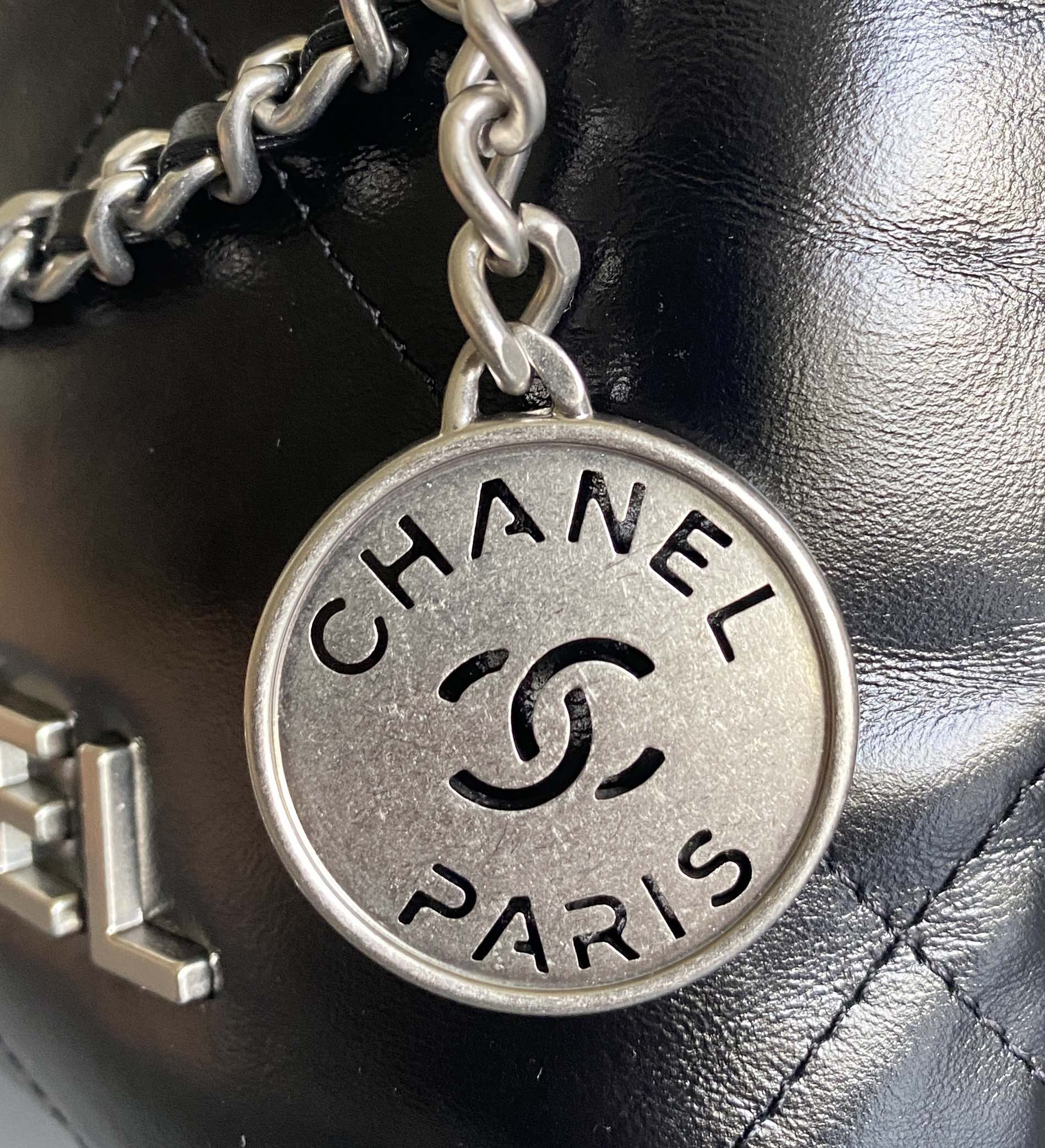 cc 22 hobo 35cm black and silver lambskin silver hardware