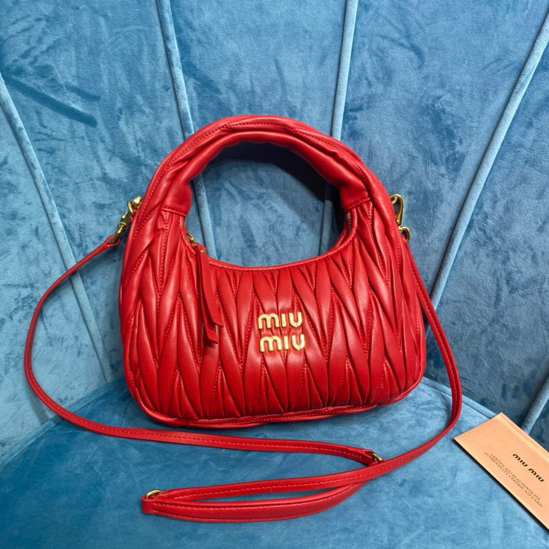 miu wander hobo medium 23cm red metalasse lambskin