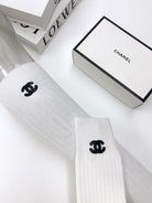 • Classic pair of long socks with Double C letter logo from CC, pure cotton fabric.