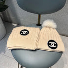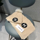 SET BEANIE HAT AND SCARF IN BISQUE BEIGE WOOL 424022