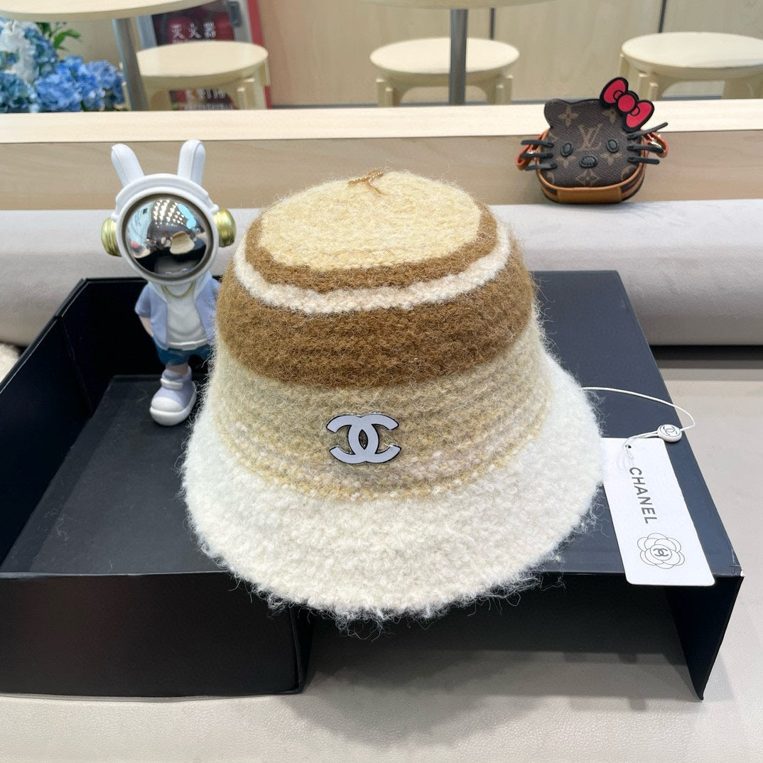 BUCKET HAT IN BEIGE MIX CAMEL BROWN PLUSH AND WOOL 433425