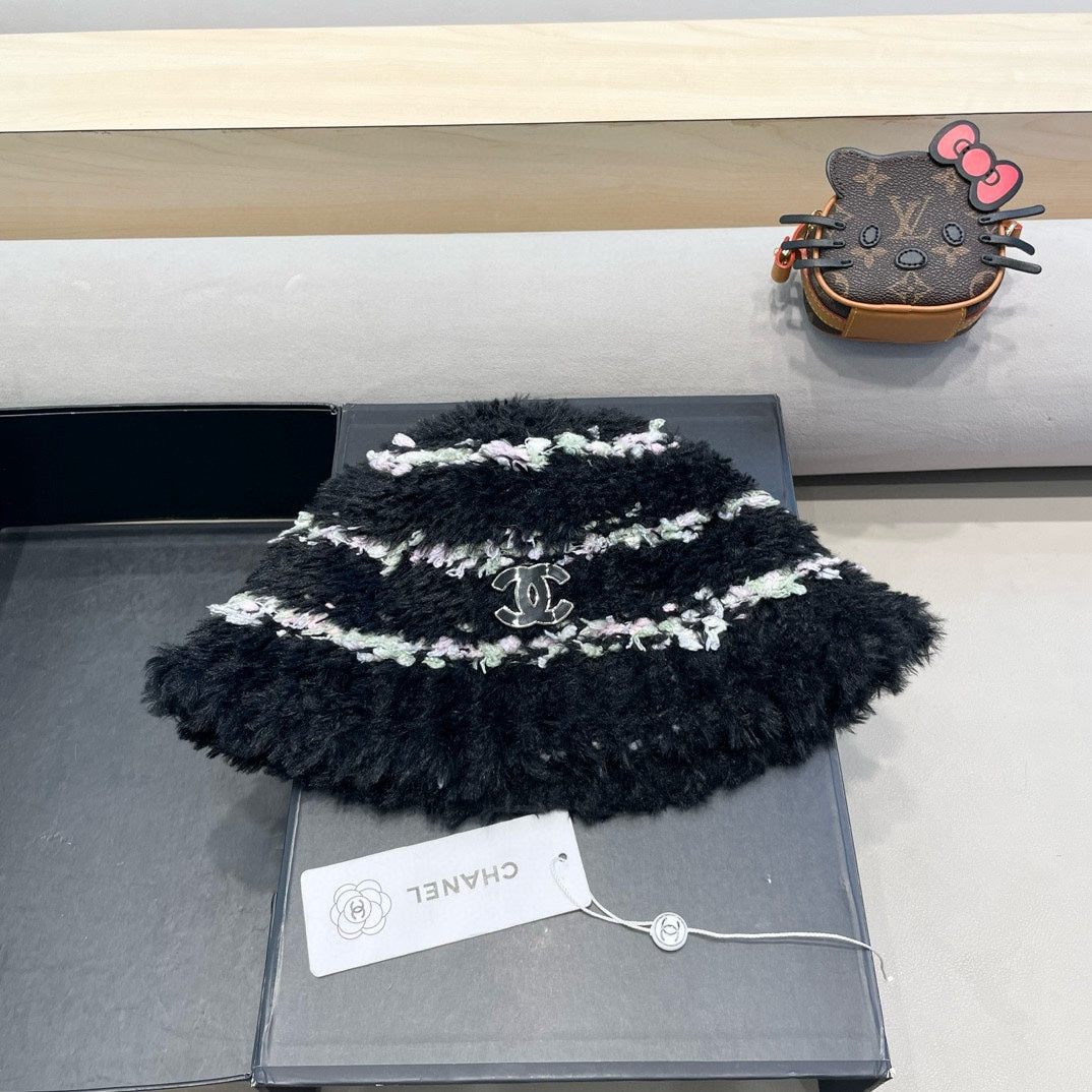 BUCKET HAT IN BLACK MIX WHITE LAMB WOOL 431621