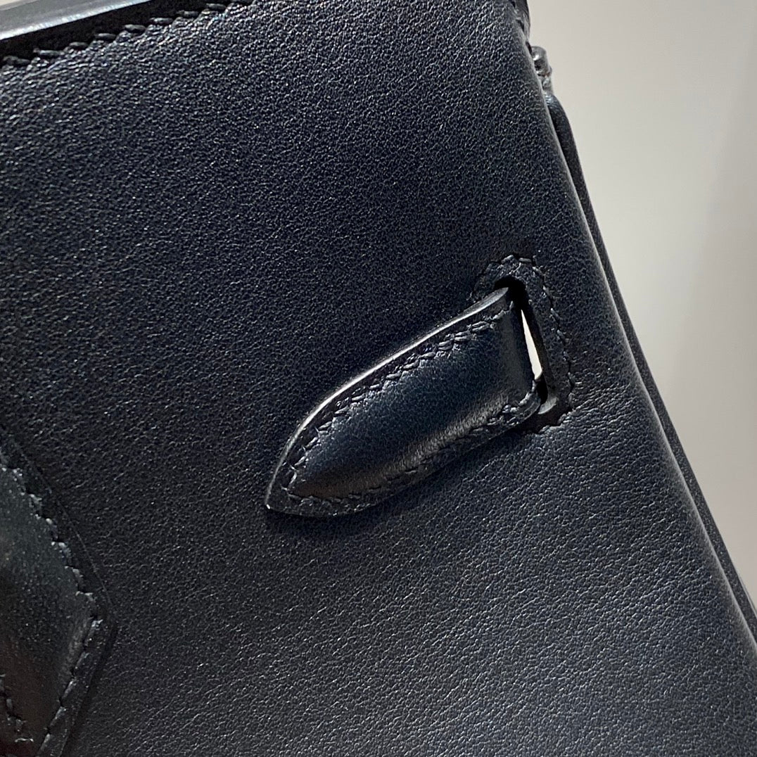 HM Birkin 25cm Black Swift Dark Grey Canvas Silver Hardware