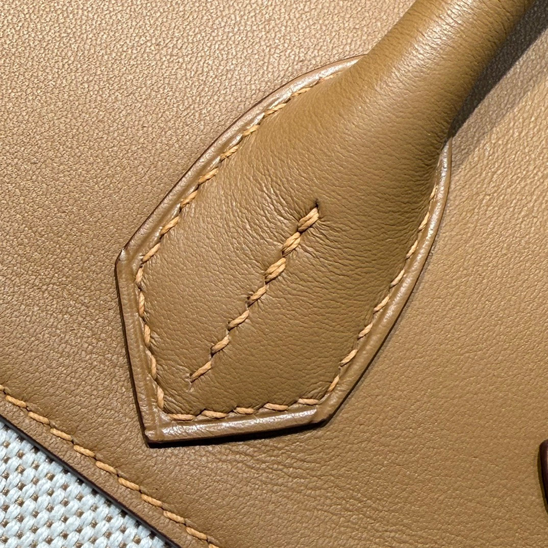 HM Birkin 35cm Gold Swift Leather Beige Canvas Silver Hardware