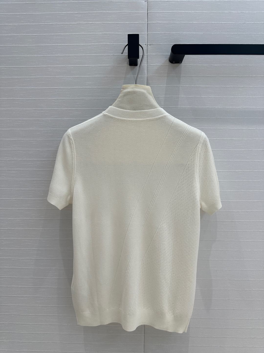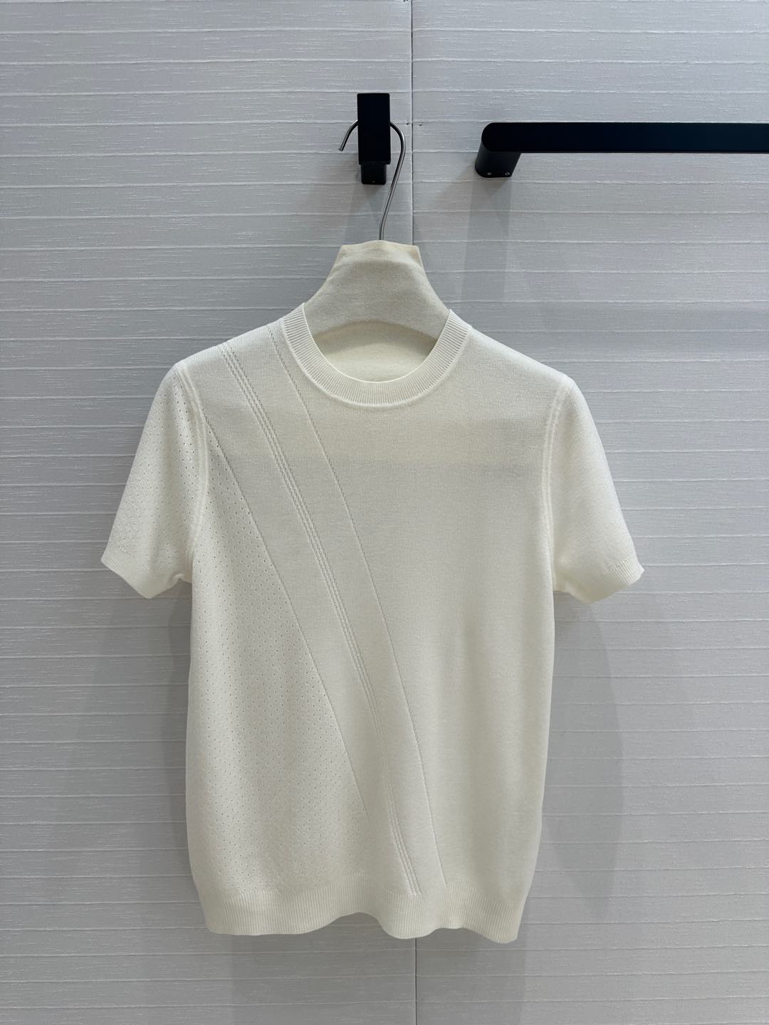 Hm 25 Hollow Knit Short-Sleeve Top White Tencel Cotton
