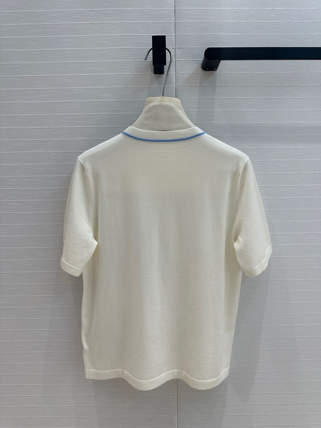 Hm 25 Short-sleeved Sweater White Blue Wool