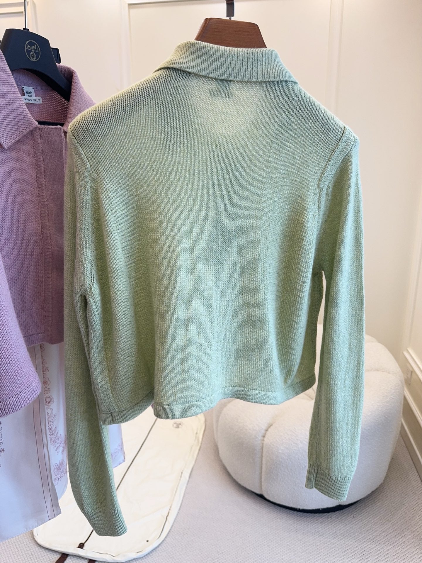 Hm 25 Hollow Knit Short-Sleeve Top Blue Green Tencel Cotton