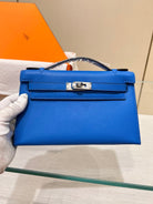 HM KELLY POCHETTE 22CM BLUE SWIFT SILVER HARDWARE