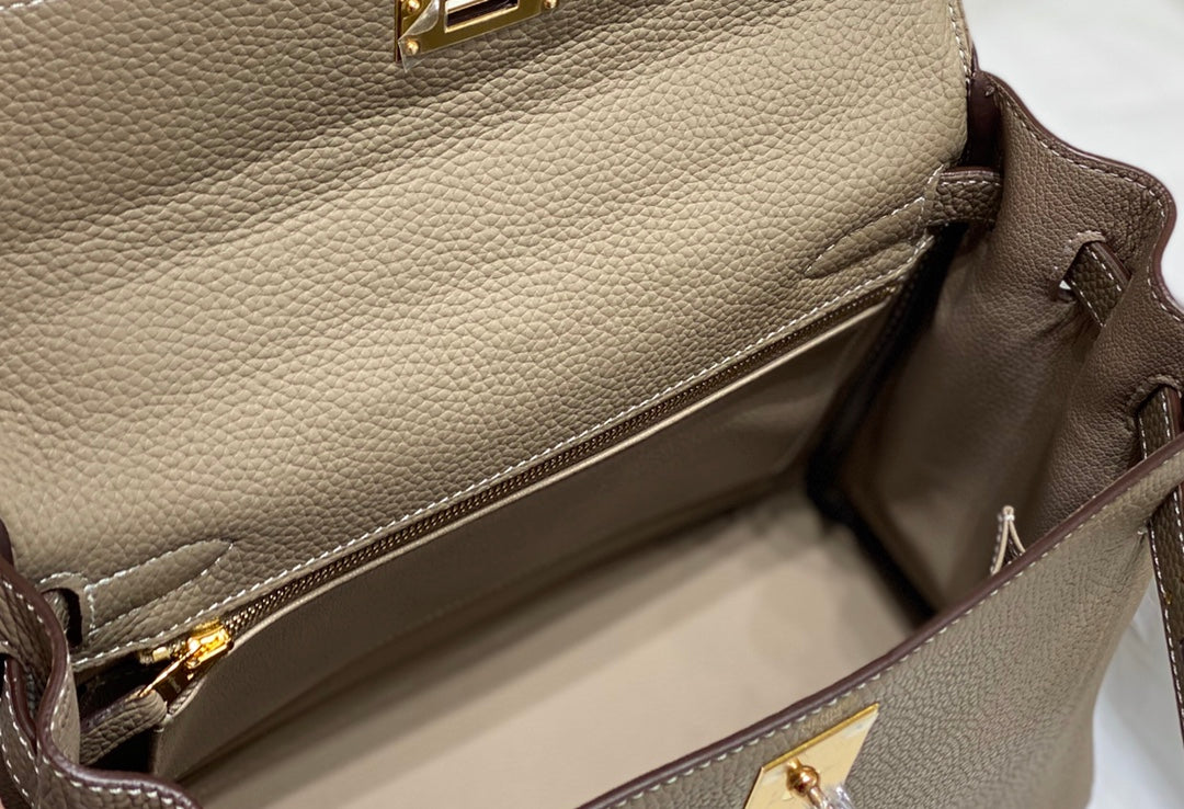 HM KELLY 28CM LIGHT GREY TOGO GOLD HARDWARE