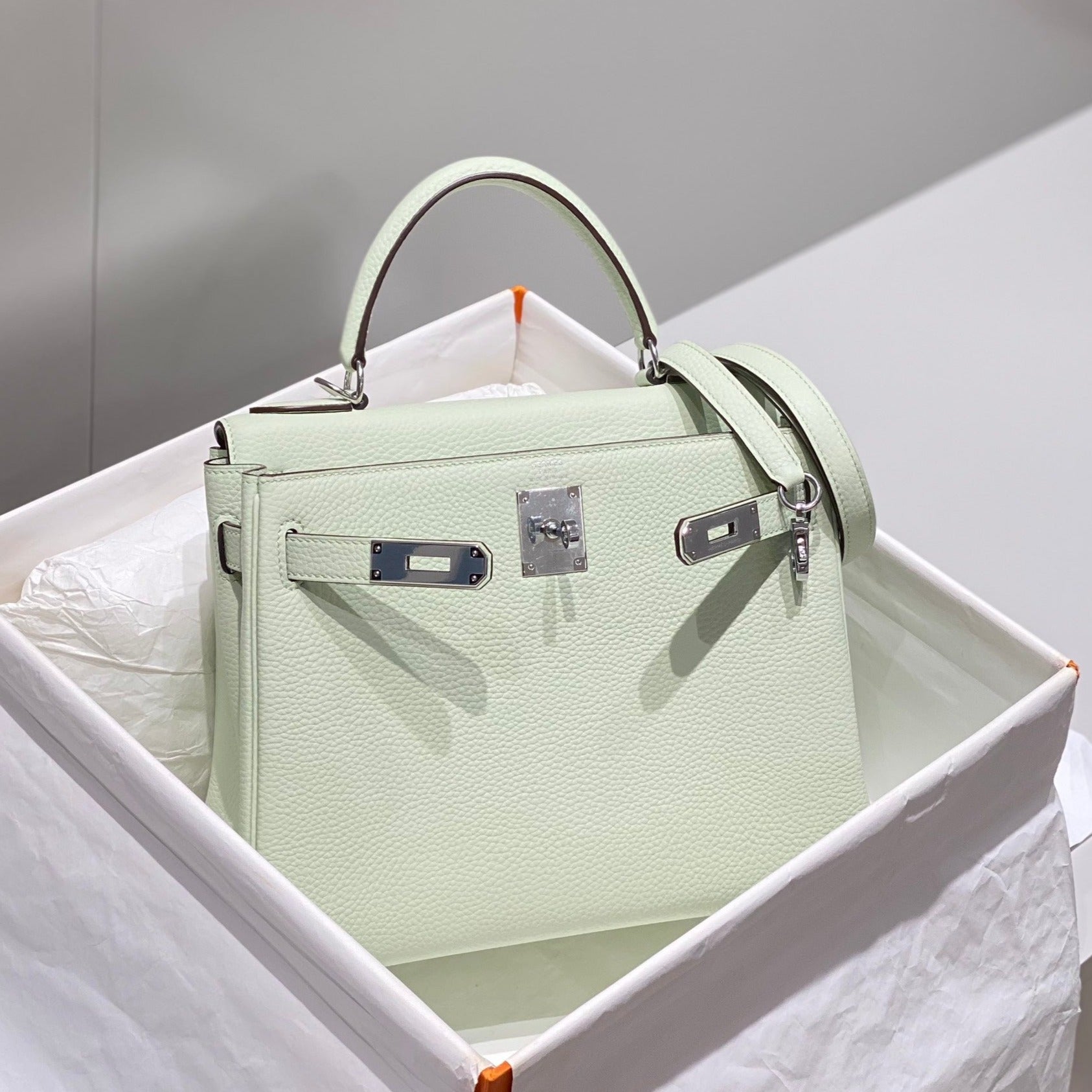 HM KELLY 28CM LIGHT GREEN TOGO SILVER HARDWARE