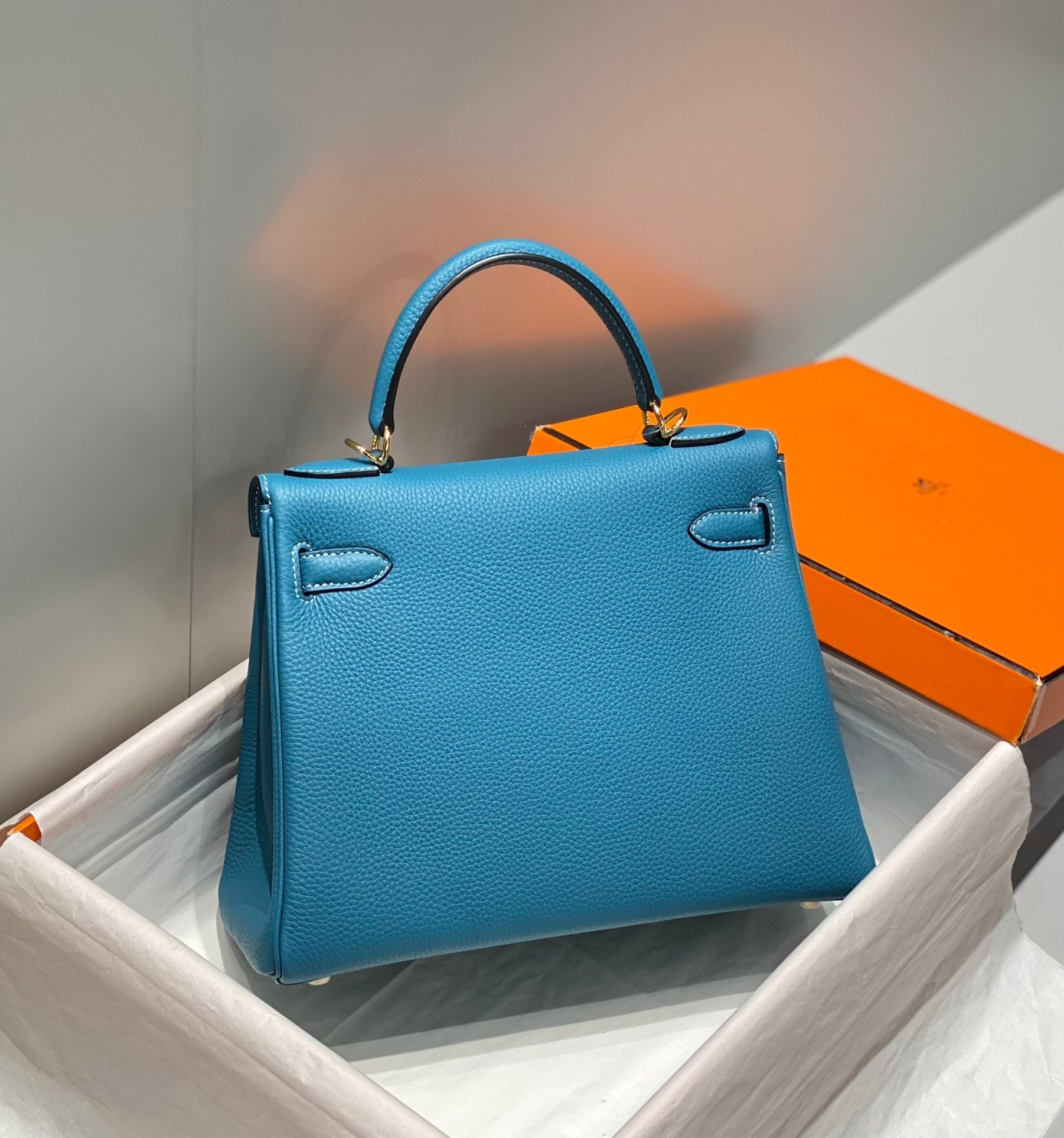 HM KELLY 28CM BLUE SKY TOGO GOLD HARDWARE
