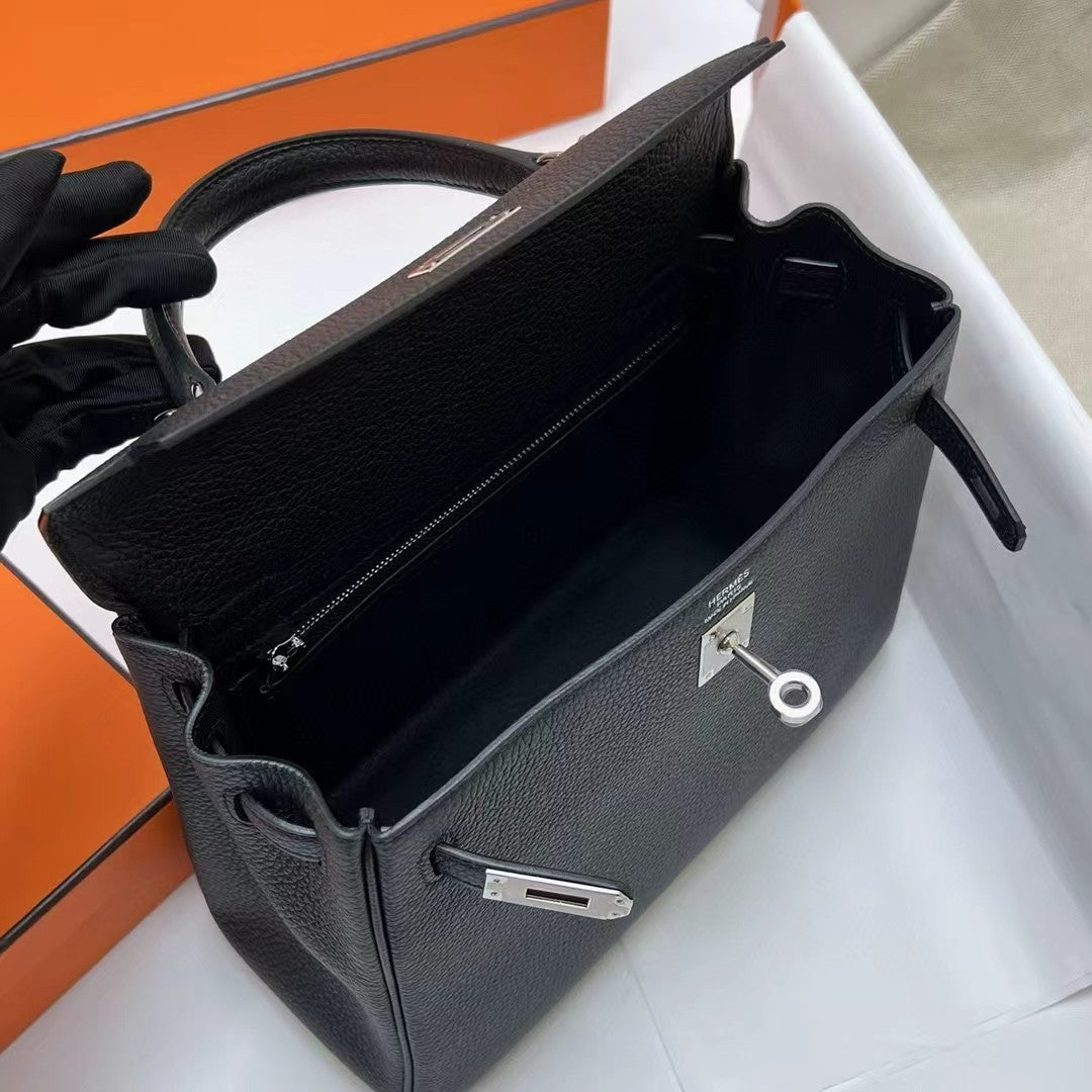 hm kelly 32cm black togo leather silver hardware