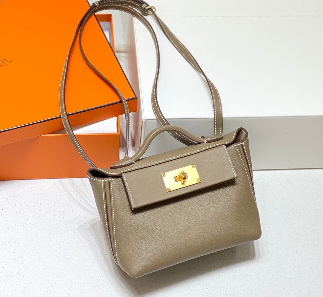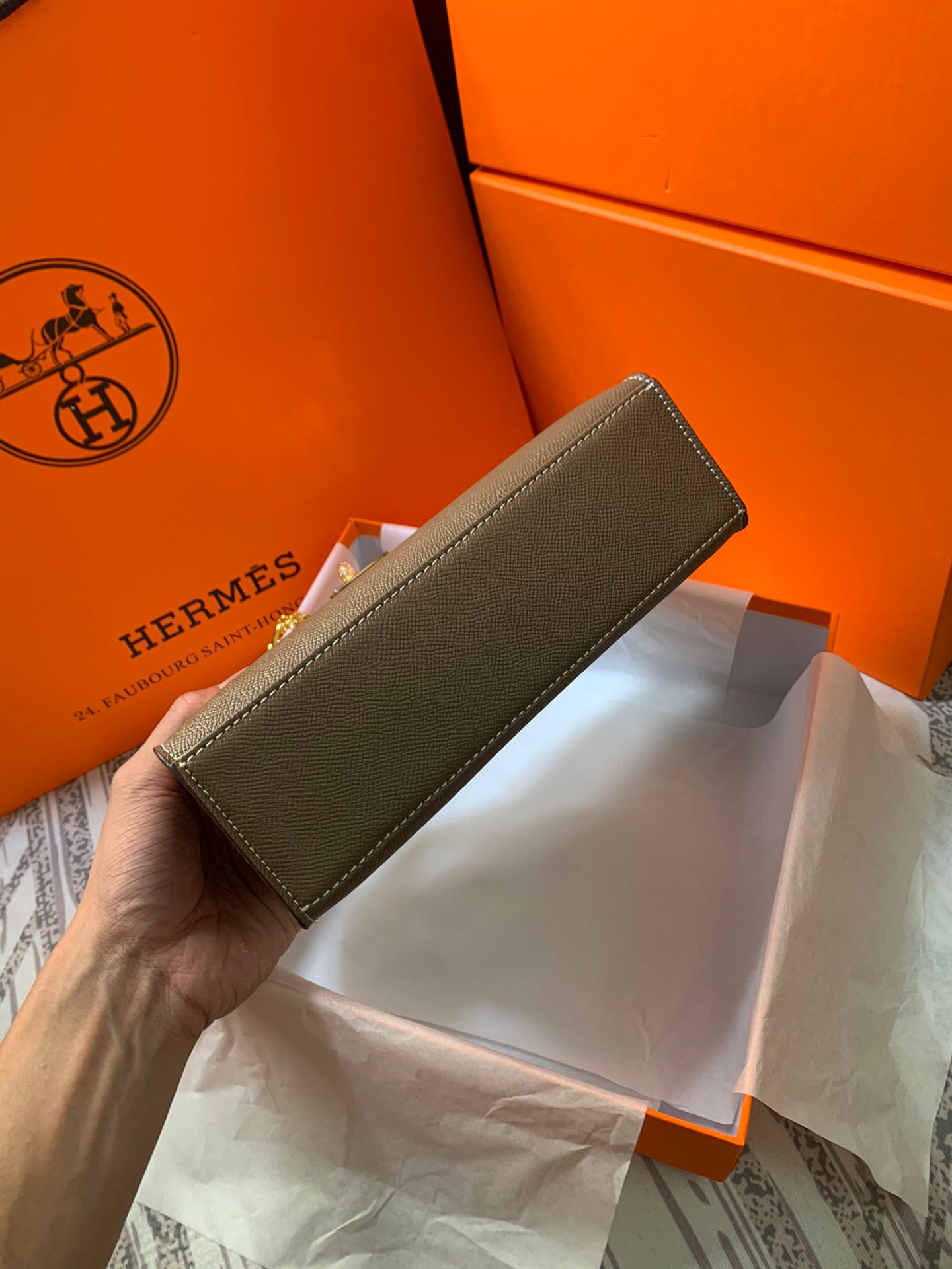 HM KELLY HANDBAG 21 KHAKI CALFSKIN