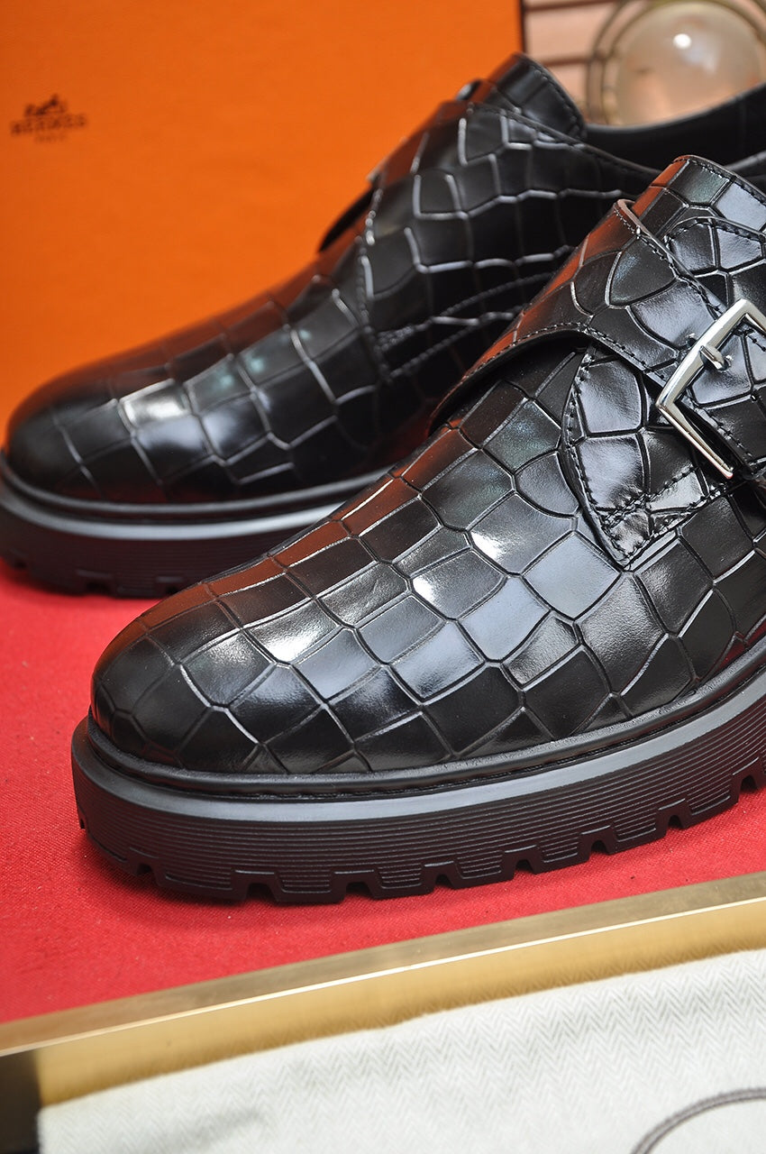 HM MONK STRAP BLACK WITH CROCODILE MOTIF CALFSKIN