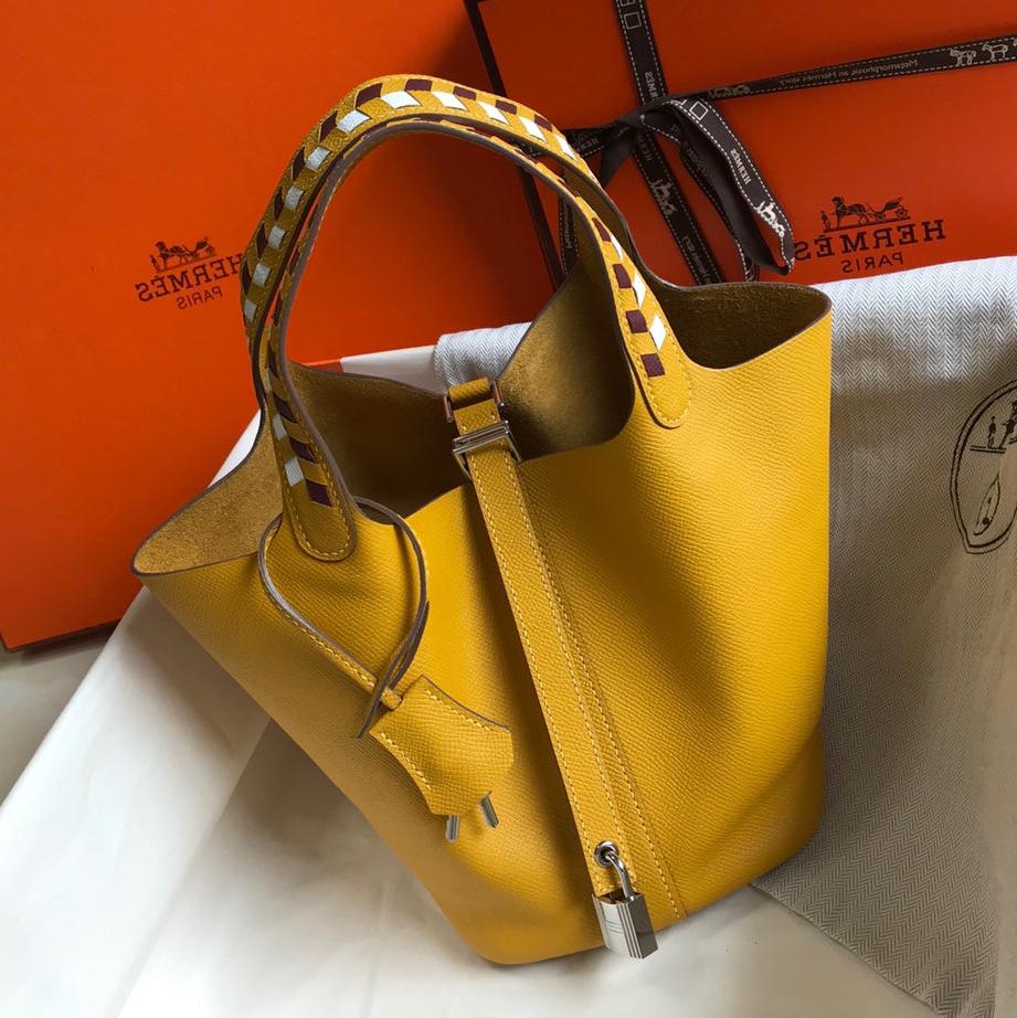 HM PICOTIN LOCK 18 YELLOW EPSOM WITH BRAID STRAP