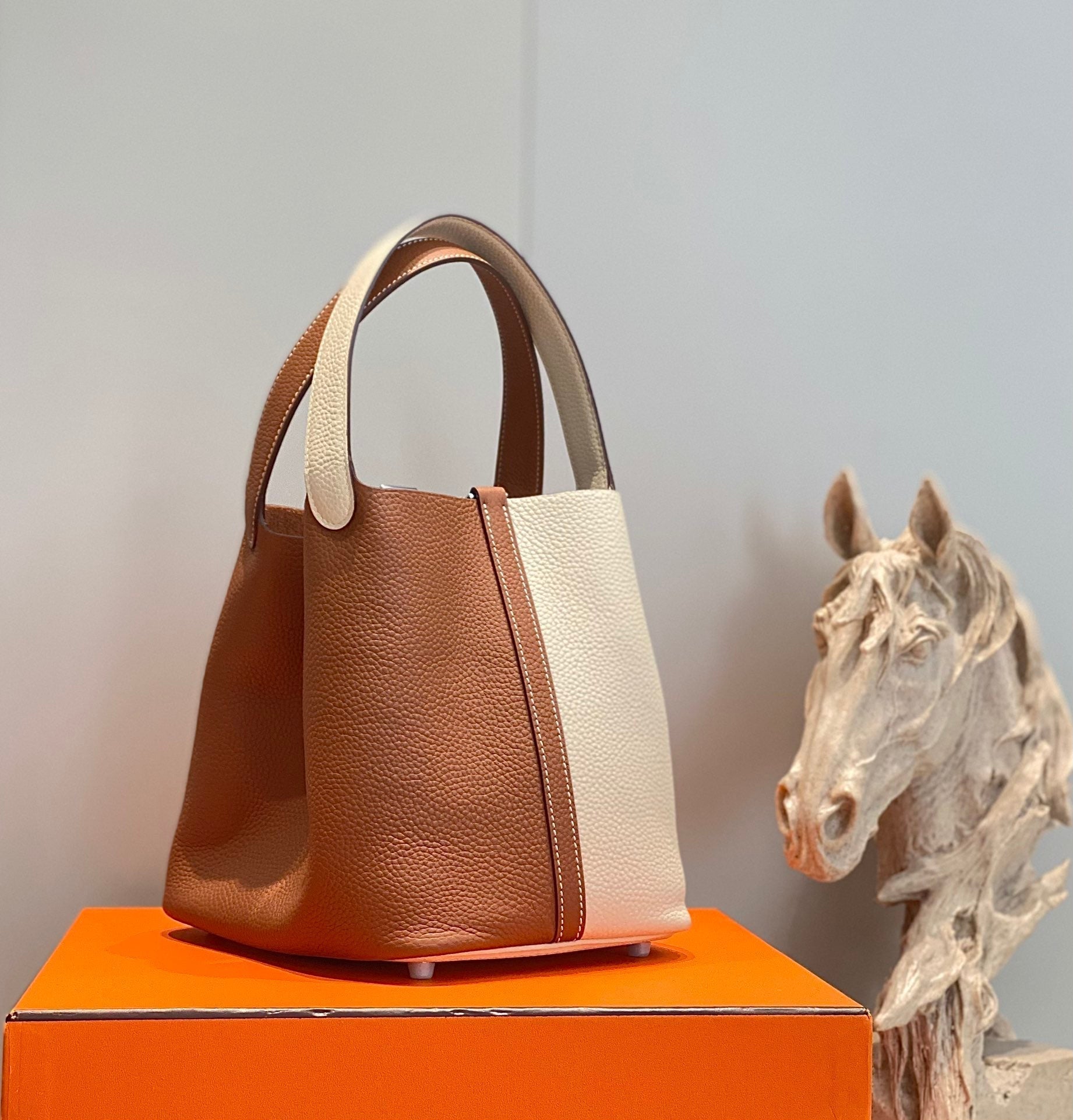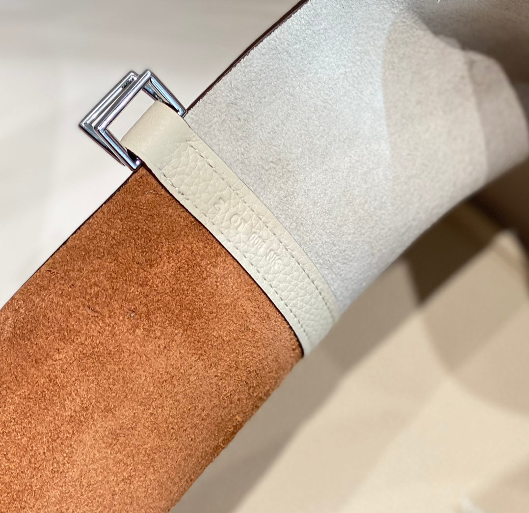HM PICOTIN LOCK 22 WHITE AND BROWN TOGO LEATHER