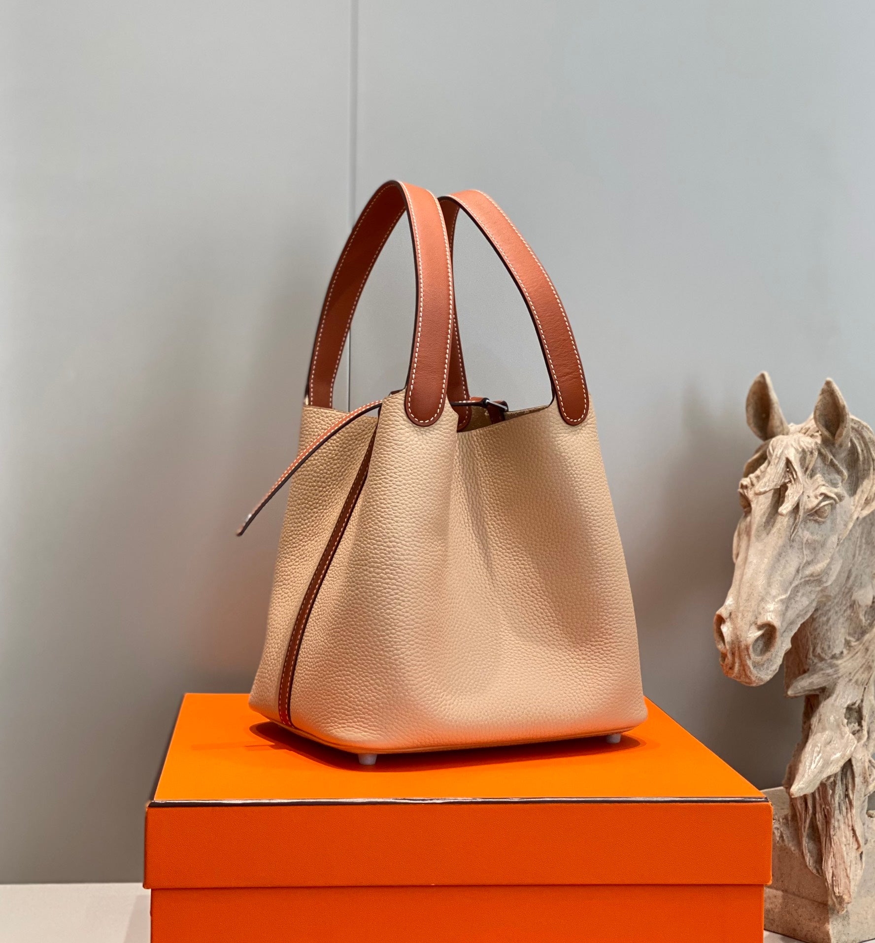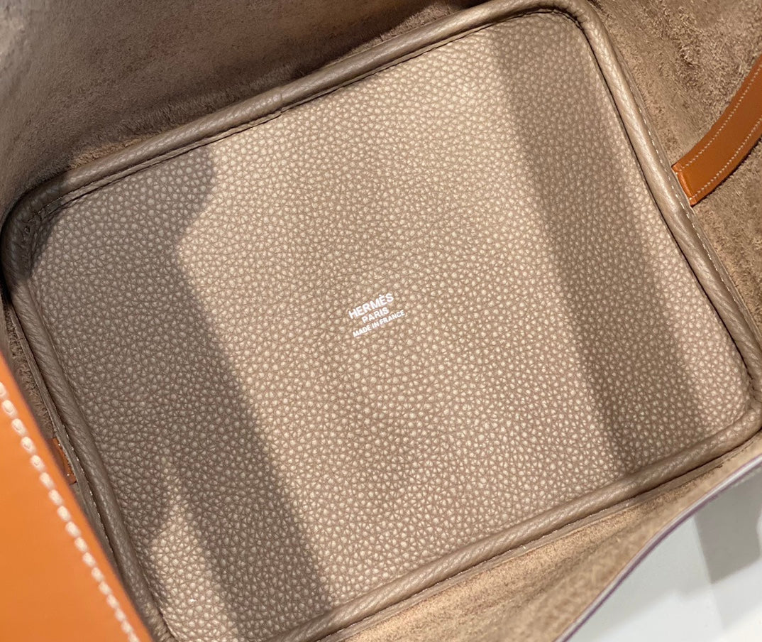 HM PICOTIN LOCK 22 ORANGE AND ASH BROWN TOGO LEATHER